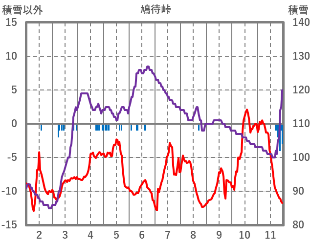 | 日 | 時 | 気温 | 降水 | 風向/風速 | 日照 | 積雪 | 降雪 |