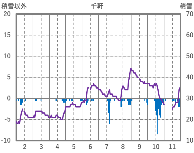 | 日 | 時 | 気温 | 降水 | 風向/風速 | 日照 | 積雪 | 降雪 |