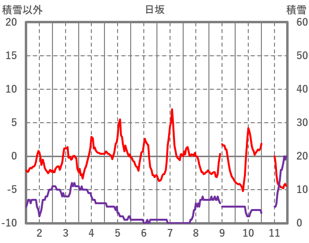 | 日 | 時 | 気温 | 降水 | 風向/風速 | 日照 | 積雪 | 降雪 |