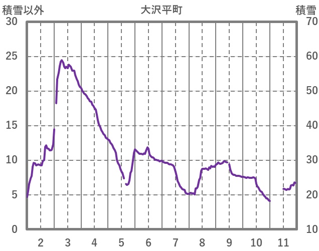 | 日 | 時 | 気温 | 降水 | 風向/風速 | 日照 | 積雪 | 降雪 |
