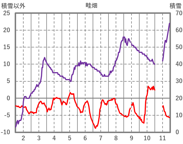 | 日 | 時 | 気温 | 降水 | 風向/風速 | 日照 | 積雪 | 降雪 |