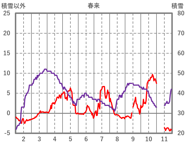 | 日 | 時 | 気温 | 降水 | 風向/風速 | 日照 | 積雪 | 降雪 |