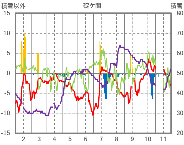 | 日 | 時 | 気温 | 降水 | 風向/風速 | 日照 | 積雪 | 降雪 |
