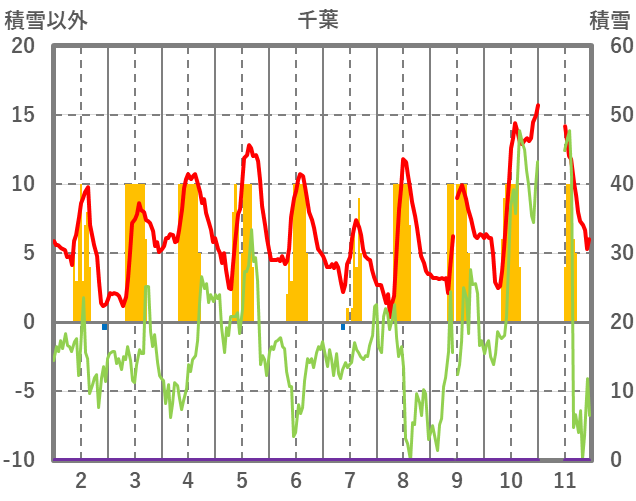 | 日 | 時 | 気温 | 降水 | 風向/風速 | 日照 | 積雪 | 降雪 |