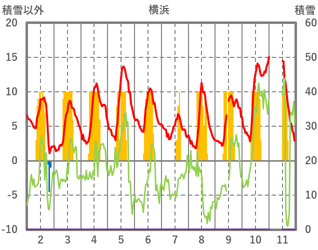 | 日 | 時 | 気温 | 降水 | 風向/風速 | 日照 | 積雪 | 降雪 |
