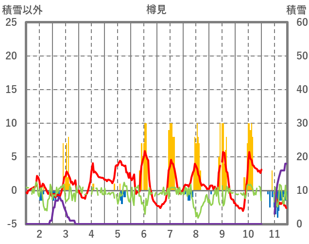 | 日 | 時 | 気温 | 降水 | 風向/風速 | 日照 | 積雪 | 降雪 |