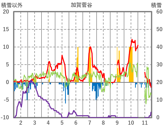| 日 | 時 | 気温 | 降水 | 風向/風速 | 日照 | 積雪 | 降雪 |
