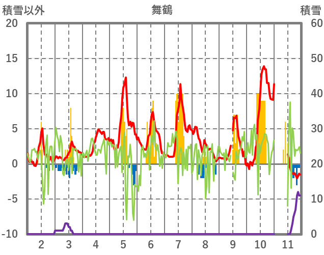 | 日 | 時 | 気温 | 降水 | 風向/風速 | 日照 | 積雪 | 降雪 |