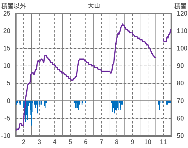 | 日 | 時 | 気温 | 降水 | 風向/風速 | 日照 | 積雪 | 降雪 |