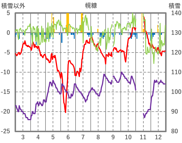 | 日 | 時 | 気温 | 降水 | 風向/風速 | 日照 | 積雪 | 降雪 |