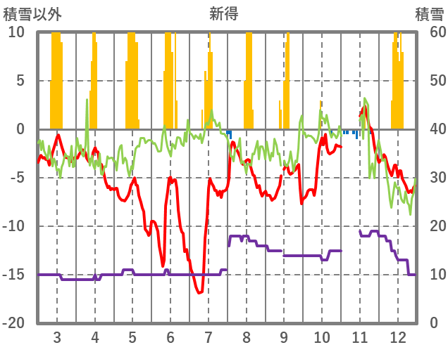 | 日 | 時 | 気温 | 降水 | 風向/風速 | 日照 | 積雪 | 降雪 |