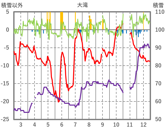 | 日 | 時 | 気温 | 降水 | 風向/風速 | 日照 | 積雪 | 降雪 |