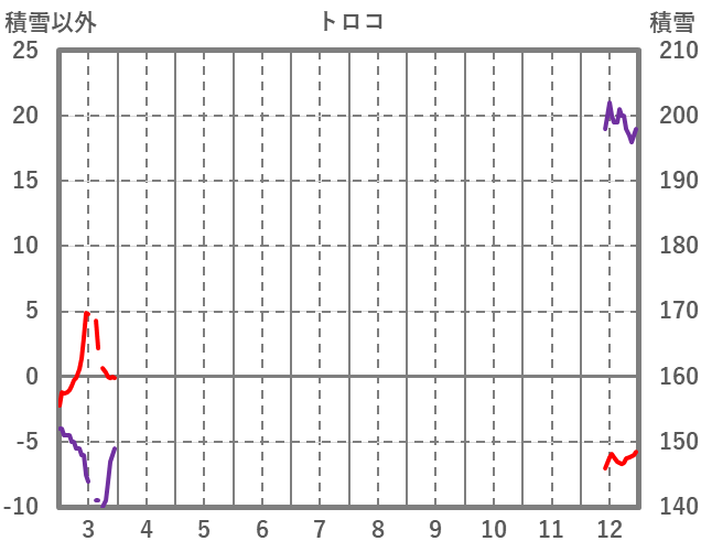 | 日 | 時 | 気温 | 降水 | 風向/風速 | 日照 | 積雪 | 降雪 |