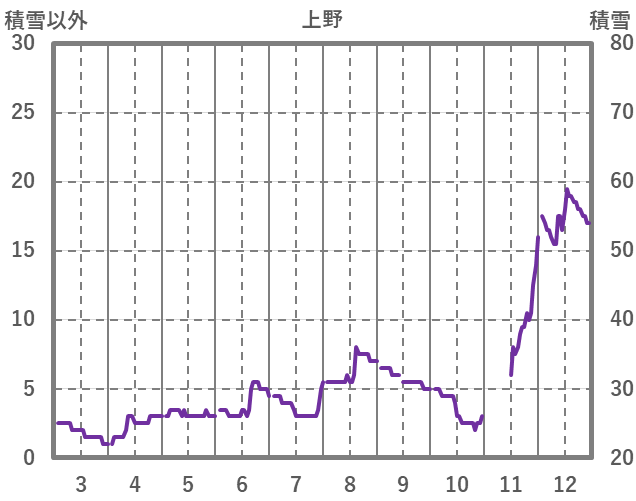| 日 | 時 | 気温 | 降水 | 風向/風速 | 日照 | 積雪 | 降雪 |