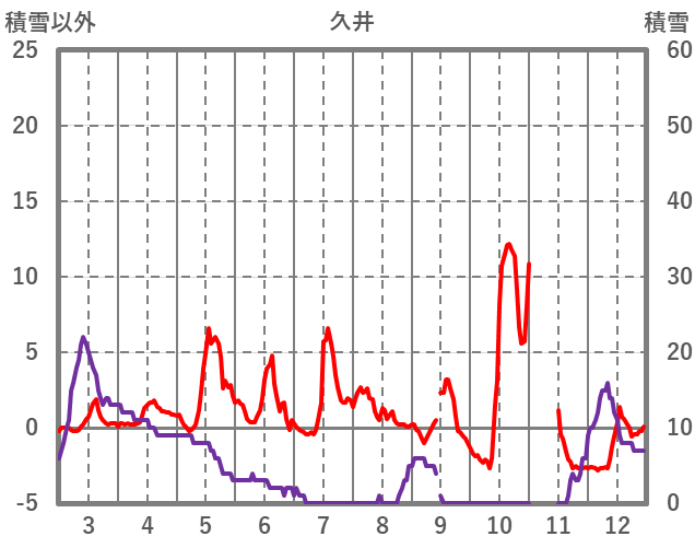 | 日 | 時 | 気温 | 降水 | 風向/風速 | 日照 | 積雪 | 降雪 |