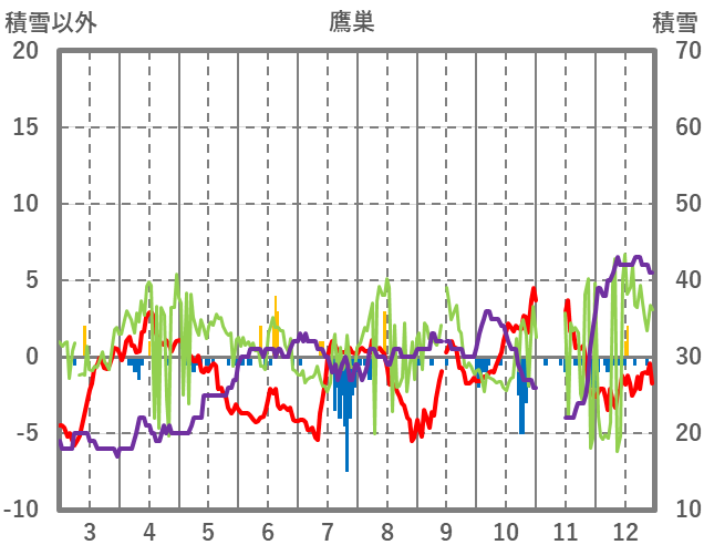 | 日 | 時 | 気温 | 降水 | 風向/風速 | 日照 | 積雪 | 降雪 |