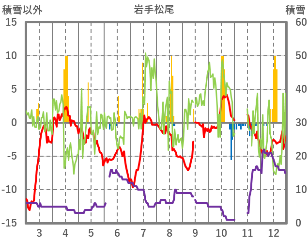 | 日 | 時 | 気温 | 降水 | 風向/風速 | 日照 | 積雪 | 降雪 |