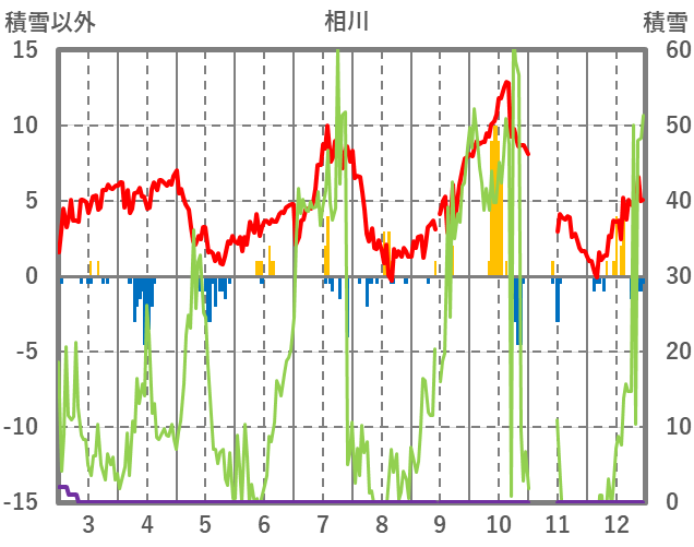| 日 | 時 | 気温 | 降水 | 風向/風速 | 日照 | 積雪 | 降雪 |