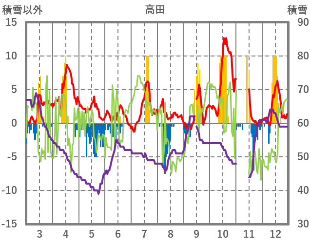 | 日 | 時 | 気温 | 降水 | 風向/風速 | 日照 | 積雪 | 降雪 |