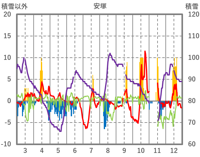 | 日 | 時 | 気温 | 降水 | 風向/風速 | 日照 | 積雪 | 降雪 |