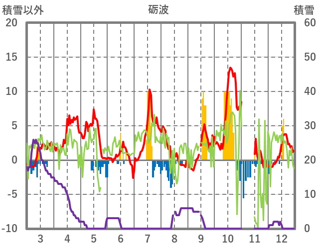 | 日 | 時 | 気温 | 降水 | 風向/風速 | 日照 | 積雪 | 降雪 |