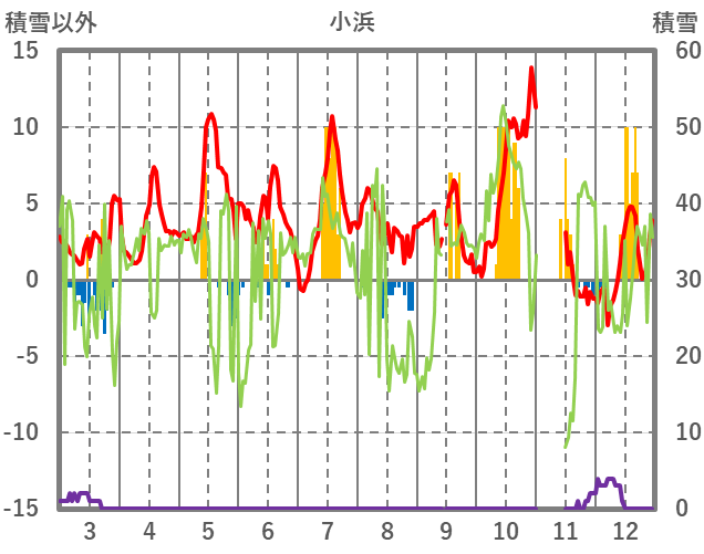 | 日 | 時 | 気温 | 降水 | 風向/風速 | 日照 | 積雪 | 降雪 |