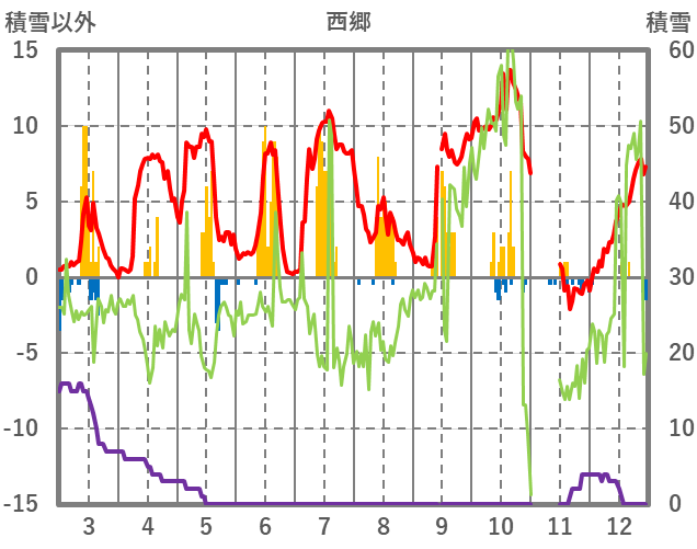 | 日 | 時 | 気温 | 降水 | 風向/風速 | 日照 | 積雪 | 降雪 |