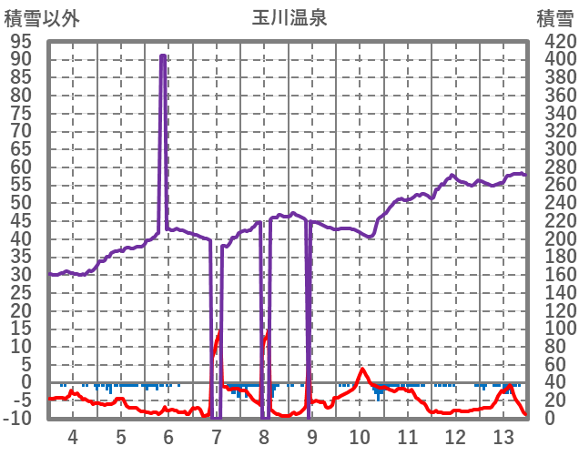 | 日 | 時 | 気温 | 降水 | 風向/風速 | 日照 | 積雪 | 降雪 |