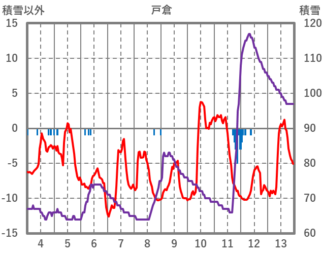 | 日 | 時 | 気温 | 降水 | 風向/風速 | 日照 | 積雪 | 降雪 |