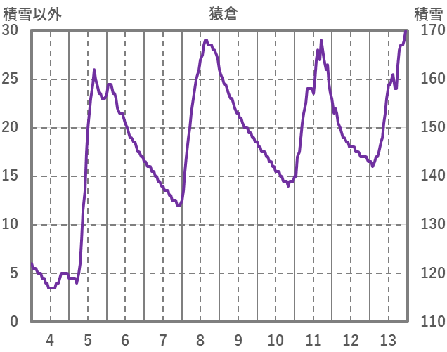 | 日 | 時 | 気温 | 降水 | 風向/風速 | 日照 | 積雪 | 降雪 |