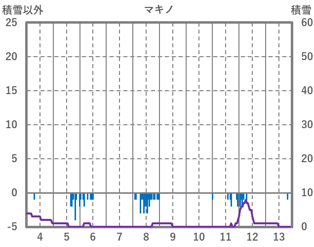 | 日 | 時 | 気温 | 降水 | 風向/風速 | 日照 | 積雪 | 降雪 |