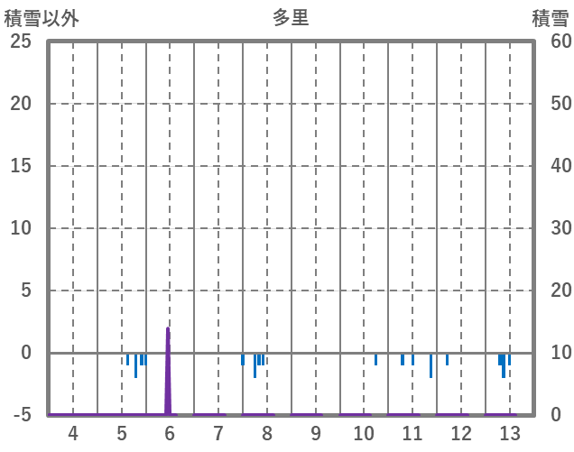 | 日 | 時 | 気温 | 降水 | 風向/風速 | 日照 | 積雪 | 降雪 |