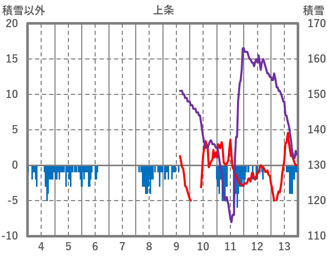 | 日 | 時 | 気温 | 降水 | 風向/風速 | 日照 | 積雪 | 降雪 |