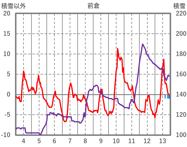 | 日 | 時 | 気温 | 降水 | 風向/風速 | 日照 | 積雪 | 降雪 |