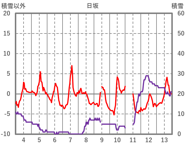 | 日 | 時 | 気温 | 降水 | 風向/風速 | 日照 | 積雪 | 降雪 |