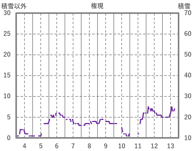 | 日 | 時 | 気温 | 降水 | 風向/風速 | 日照 | 積雪 | 降雪 |