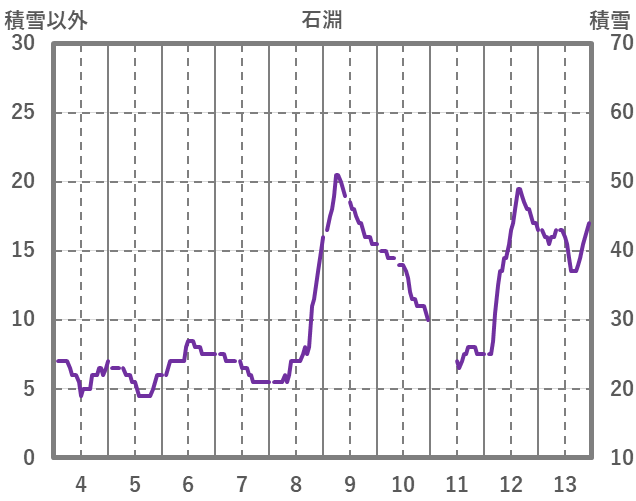 | 日 | 時 | 気温 | 降水 | 風向/風速 | 日照 | 積雪 | 降雪 |