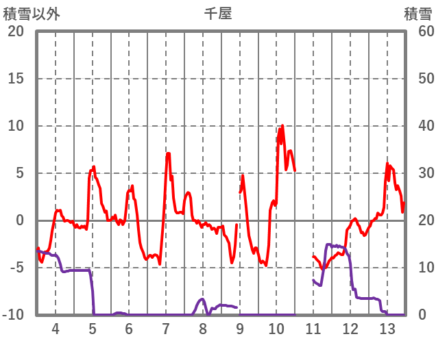 | 日 | 時 | 気温 | 降水 | 風向/風速 | 日照 | 積雪 | 降雪 |