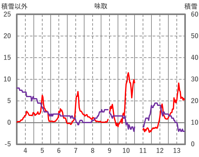 | 日 | 時 | 気温 | 降水 | 風向/風速 | 日照 | 積雪 | 降雪 |