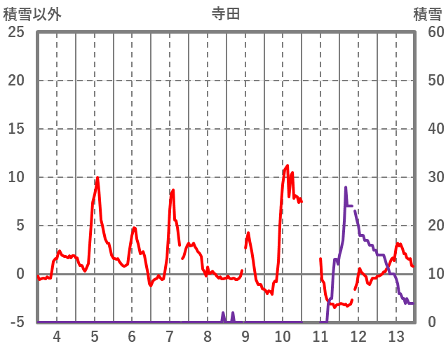 | 日 | 時 | 気温 | 降水 | 風向/風速 | 日照 | 積雪 | 降雪 |