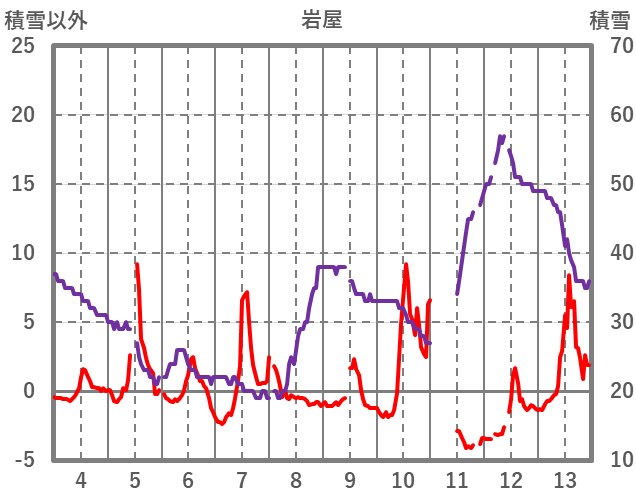 | 日 | 時 | 気温 | 降水 | 風向/風速 | 日照 | 積雪 | 降雪 |