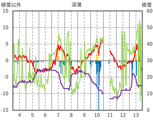 | 日 | 時 | 気温 | 降水 | 風向/風速 | 日照 | 積雪 | 降雪 |