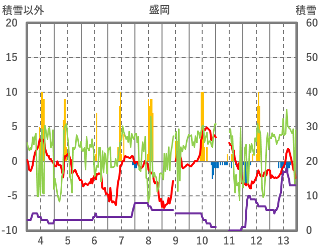 | 日 | 時 | 気温 | 降水 | 風向/風速 | 日照 | 積雪 | 降雪 |