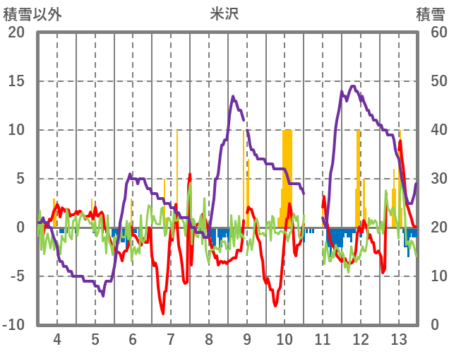 | 日 | 時 | 気温 | 降水 | 風向/風速 | 日照 | 積雪 | 降雪 |