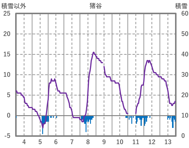 | 日 | 時 | 気温 | 降水 | 風向/風速 | 日照 | 積雪 | 降雪 |