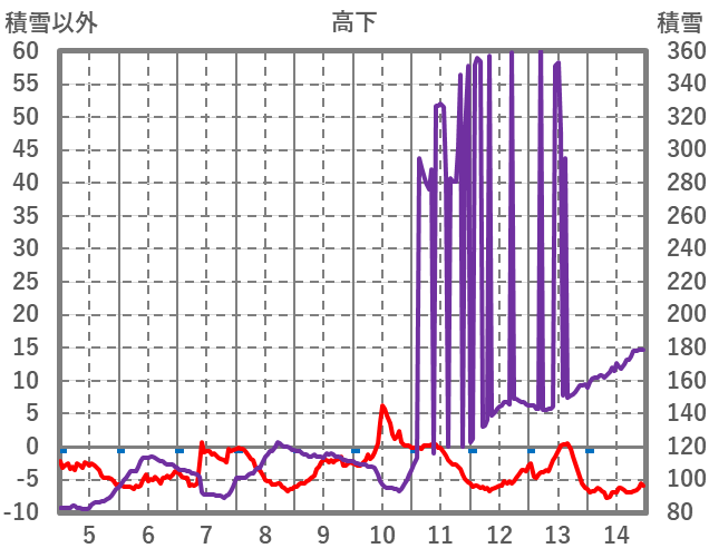| 日 | 時 | 気温 | 降水 | 風向/風速 | 日照 | 積雪 | 降雪 |