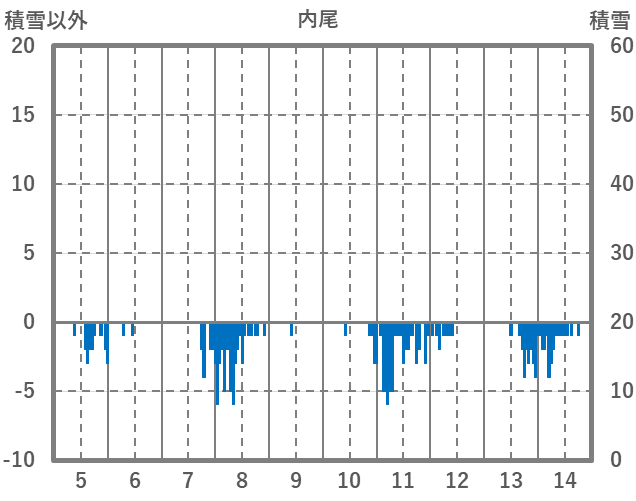 | 日 | 時 | 気温 | 降水 | 風向/風速 | 日照 | 積雪 | 降雪 |
