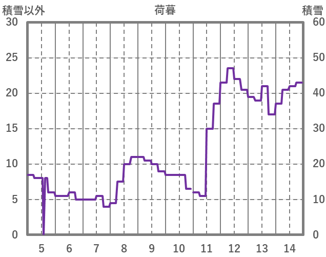 | 日 | 時 | 気温 | 降水 | 風向/風速 | 日照 | 積雪 | 降雪 |