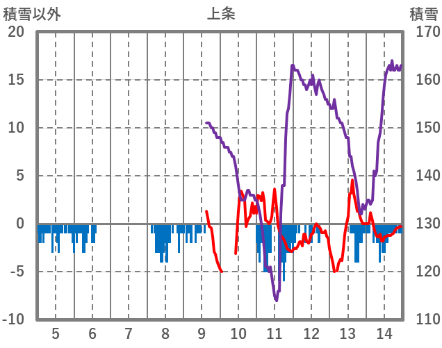| 日 | 時 | 気温 | 降水 | 風向/風速 | 日照 | 積雪 | 降雪 |