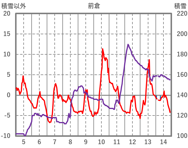 | 日 | 時 | 気温 | 降水 | 風向/風速 | 日照 | 積雪 | 降雪 |